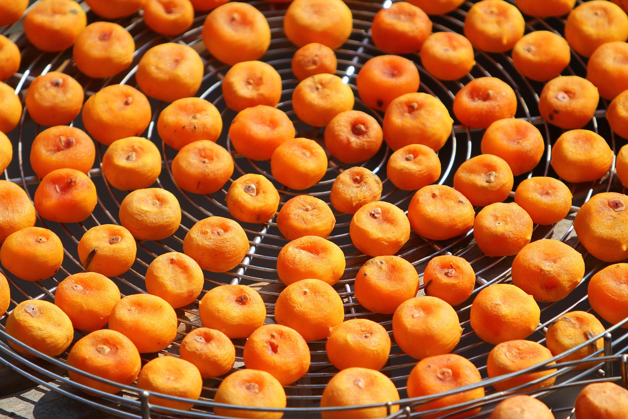 곶감 특유의 쫀득한 식감과 흰 분(당분 결정)은 떫은 감을 건조시켜야 잘 나타납니다.